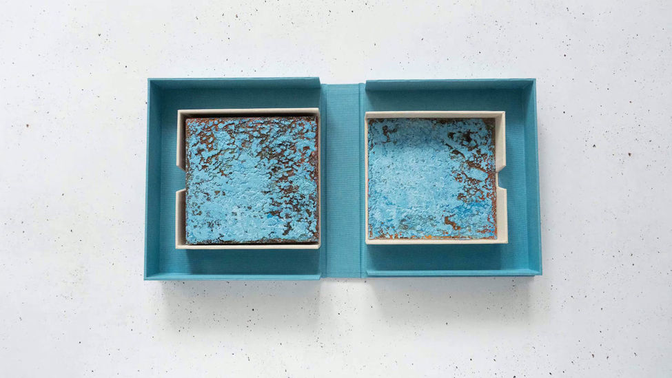 Libro d'artista in scatola telata, 10 tavole (2*17x18 cm)